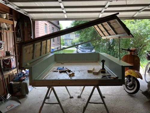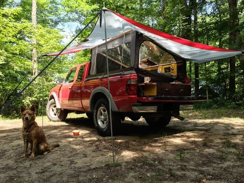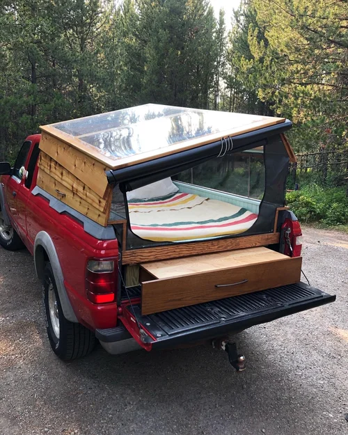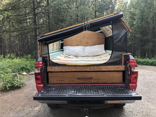 I designed and made two different pop-up campers to fit in the back of my pickup. They both feature large clear roofs, room to sleep two people, below-bed storage, and rain guards.
